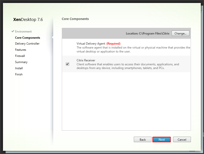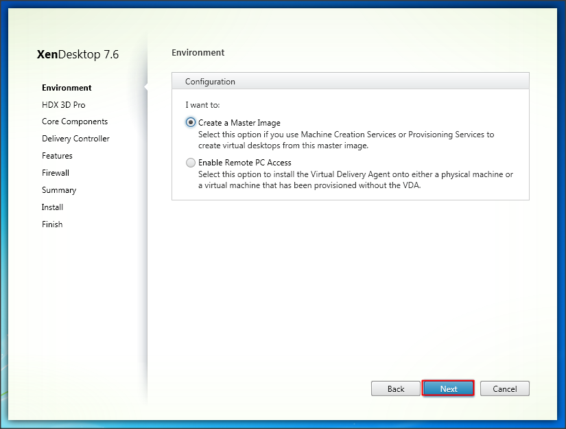 Do đang sử dụng Windows 7 nên chúng ta chỉ có thể cài đặt Virtual Delivery Agent for Windows Desktop OS hoặc Citrix Studio. Chọn như ảnh để tiến hành