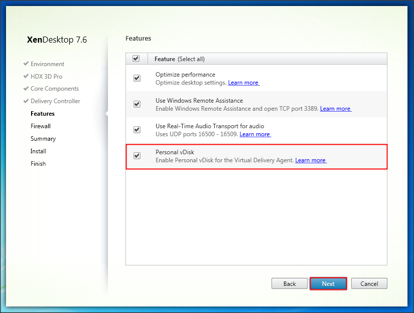 Tùy theo mô hình sử dụng mà có bật chức năng Personal vDisk hay không. Ở đây mình sử dụng dạng persistent VDI nên sử dụng personal vDisk.