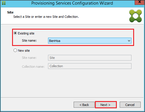 Chọn Existing Site hoặc tạo mới, do ở đây chúng ta cần tạo ở 1 nơi nên chọn Existing site