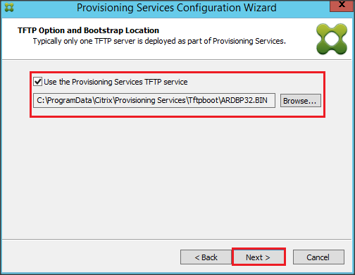 Check Use the Provisioning Services TFTP service