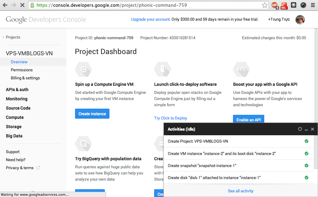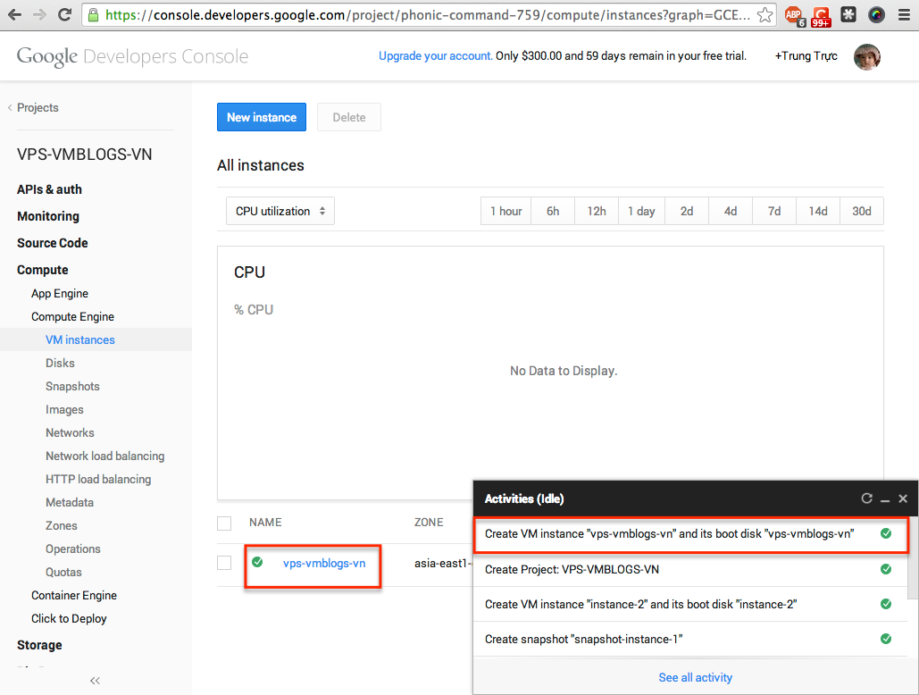 Sau khi đã giới thiệu sơ qua về Google Developers Console, trong bài này chúng ta bắt đầu tạo ra một đơn vị xử lý. Thông thường gọi là VPS cho dễ hiểu nhưng trong thế giới cloud người ta thường sinh ra nhiều từ khác gọi cho nó khác khác mà theo mình nghĩ mang tính quảng bá là chính.